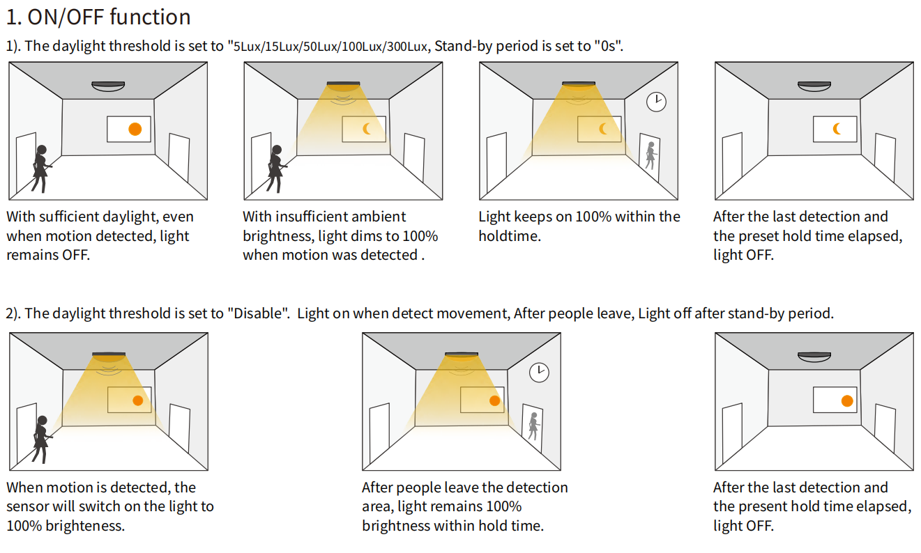 డిమ్మింగ్ అవుట్పుట్ సూపర్ కాంపేస్ లీనియర్ సెన్సార్ MC004-S02ER, డిమ్మింగ్ అవుట్పుట్ సూపర్ కాంపాక్ట్ లీనియర్ సెన్సార్ ట్రై-లెవల్ డిమ్మింగ్ కంట్రోల్ మరియు రిమోట్ కంట్రోల్ సెట్టింగ్లతో బిల్ట్-ఇన్ లీనియర్ లైటింగ్ ఫిక్చర్కు సరిపోతుంది.