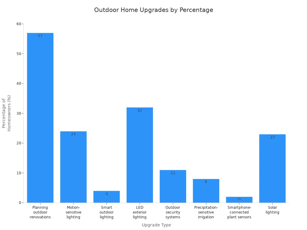 చిట్కా: చాలా మందికి స్మార్ట్ లైటింగ్ కావాలి, కానీ చాలామందికి ఇంకా అది లేదు. అవుట్డోర్ లైటింగ్ అప్గ్రేడ్ల కోసం ఎంత మంది వ్యక్తులు స్మార్ట్ నియంత్రణలు లేదా ఆటోమేషన్ని ఉపయోగిస్తున్నారో దిగువ చార్ట్ చూపుతుంది.