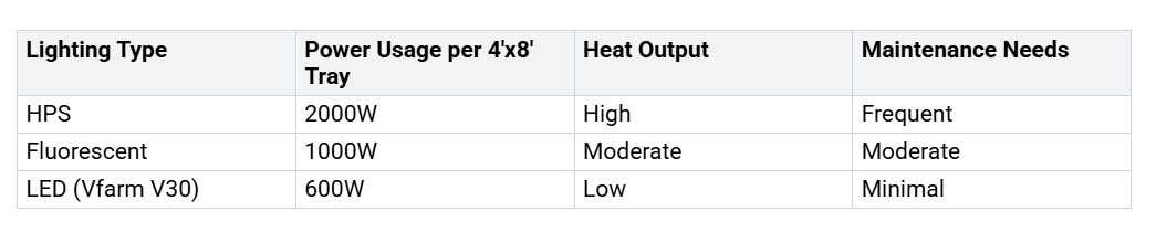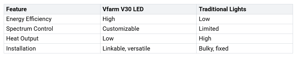 శక్తి ఖర్చులు మీ ఇండోర్ గార్డెన్ని తయారు చేయవచ్చు లేదా విచ్ఛిన్నం చేయవచ్చు. LED గ్రో లైట్లు వాటి అద్భుతమైన సామర్థ్యం మరియు తక్కువ శక్తి వినియోగం కోసం ప్రత్యేకంగా నిలుస్తాయి. మీరు సాంప్రదాయ అధిక-పీడన సోడియం (HPS) లేదా ఫ్లోరోసెంట్ లైట్ల నుండి LED లకు మారినప్పుడు, మీరు మీ శక్తి వినియోగాన్ని తగ్గించుకోవచ్చు50-70%. పెద్ద ఎత్తున నిలువు వ్యవసాయంలో, LED లు సుమారుగా ఉపయోగిస్తాయి4'x8' ట్రేకి 600W, HPS సిస్టమ్లకు అదే ప్రాంతానికి 2000W వరకు అవసరం. ఇది గణనీయమైన శక్తి పొదుపు మరియు తక్కువ విద్యుత్ బిల్లులకు అనువదిస్తుంది. LED లు కూడా తక్కువ వేడిని విడుదల చేస్తాయి, అంటే మీరు శీతలీకరణపై తక్కువ ఖర్చు చేస్తారు మరియు మీ పంటలకు దగ్గరగా లైట్లను ఉంచవచ్చు. Vfarm V30 యొక్క ఇంటిగ్రేటెడ్ డ్రైవర్ మరియు IP65 వాటర్ప్రూఫ్ డిజైన్ డిమాండ్ వాతావరణంలో నమ్మకమైన పనితీరును నిర్ధారిస్తుంది, నిర్వహణ మరియు నిర్వహణ ఖర్చులను మరింత తగ్గిస్తుంది.