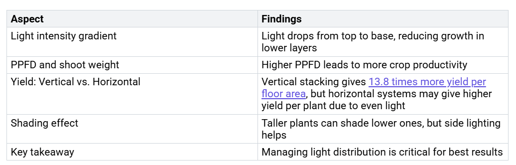 వర్టికల్ గ్రో లైట్లు మొక్కల పెరుగుదల మరియు దిగుబడిని మార్చగలవని శాస్త్రీయ అధ్యయనాల నుండి మీరు స్పష్టమైన సాక్ష్యాలను చూస్తున్నారు. కాంతి తీవ్రత పై నుండి నిలువు నిలువు వరుసలకు ఎలా మారుతుందో పరిశోధకులు కొలుస్తారు. దిగువ పొరలు తరచుగా తక్కువ కాంతిని పొందుతాయని వారు కనుగొన్నారు, ఇది పెరుగుదలను పరిమితం చేస్తుంది. అయితే, మీరు సైడ్-ఆన్ లేదా ఇంటర్లైటింగ్ స్ట్రాటజీలను ఉపయోగించినప్పుడు, మీరు అన్ని లేయర్లకు లైట్ ఎక్స్పోజర్ను పెంచవచ్చు మరియు ఉత్పాదకతను మెరుగుపరచవచ్చు.